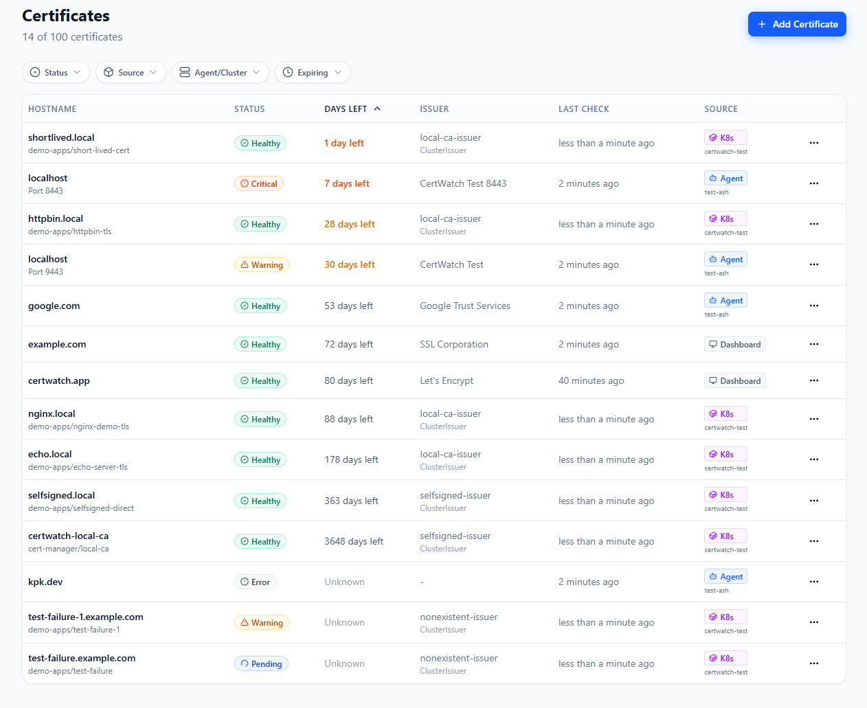 We built CertWatch because we've experienced the pain of certificate outages ourselves—both public and private. The cert-manager integration came from real frustration with existing tools that only scraped metrics without understanding the Certificate lifecycle.